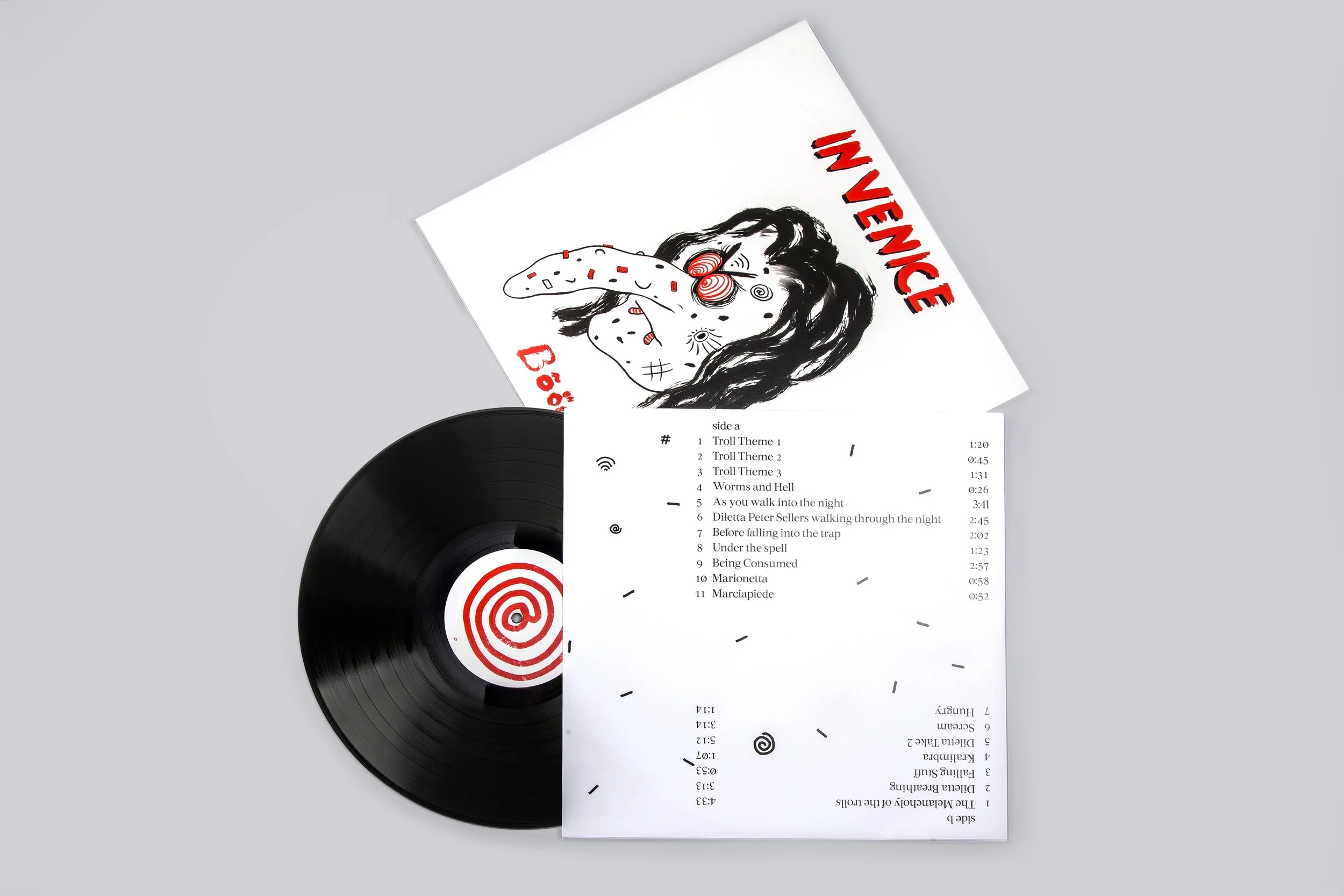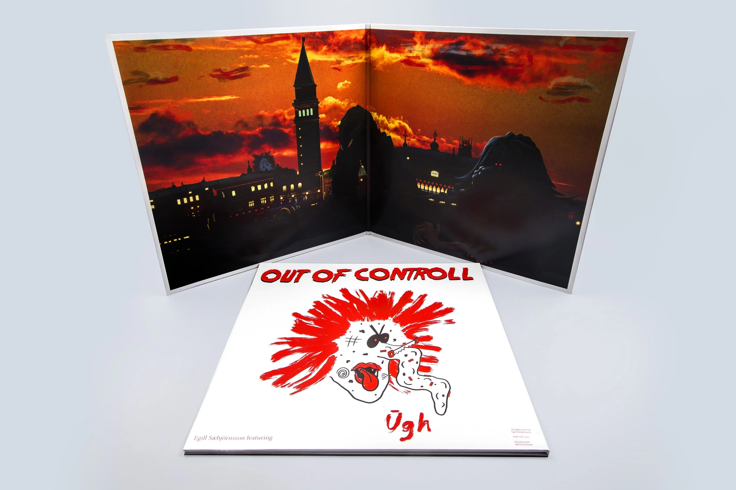The album is written in collaboration with Egill Sæbjörnsson’s two imaginary friends, the trolls Ugh & Boogar as a part of their joint installation Out Of Controll In Venice that consisted of 4 columns